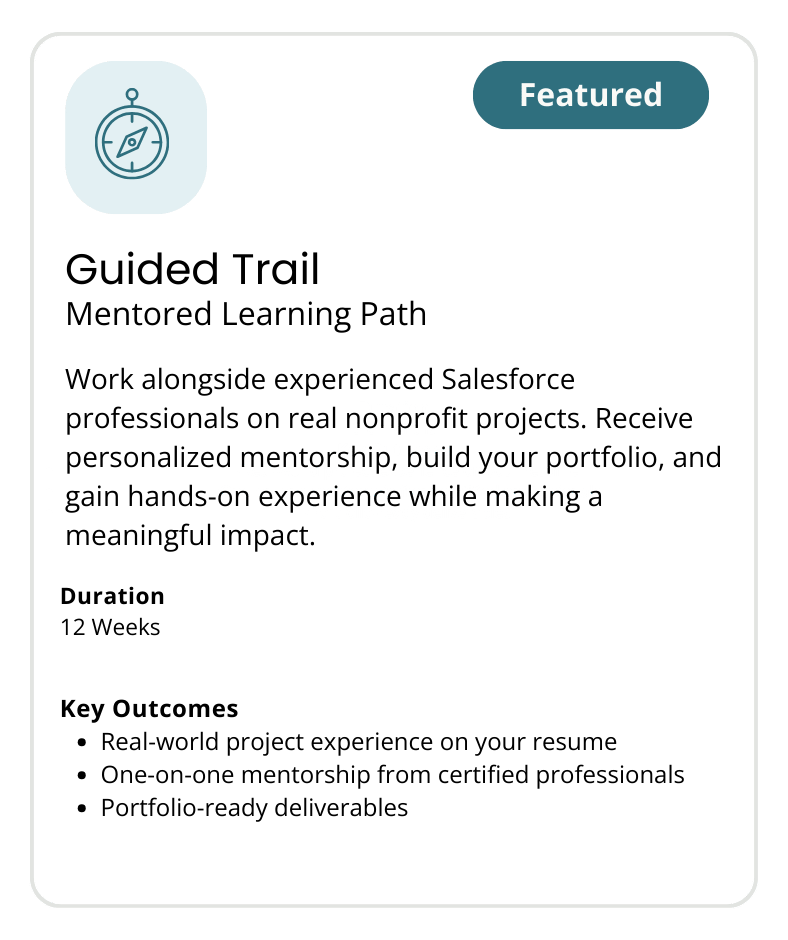 Organizations receive affordable, quality Salesforce support from supervised learners working on real projects.